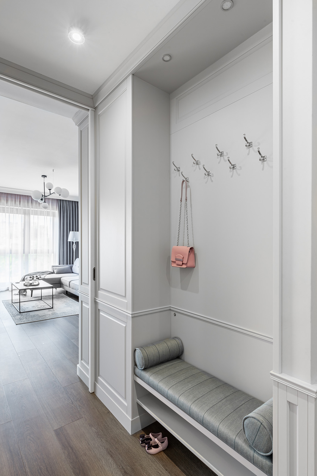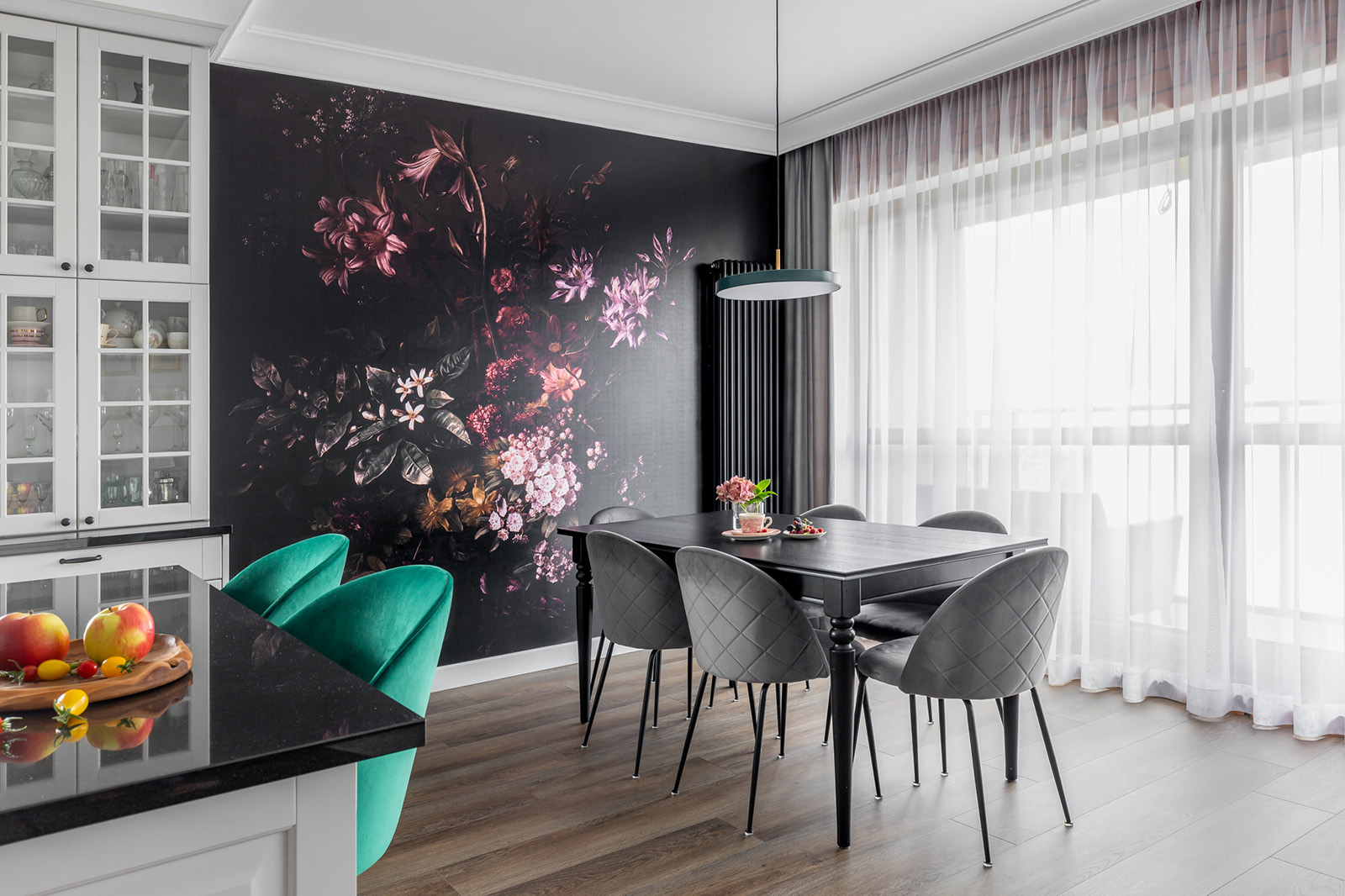 Otwarta, funkcjonalna, ale też bezpieczna i wygodna dla dzieci - takiej przestrzeni oczekiwali Natalia i Jacek, młodzi rodzice z Gdańska. Momentem decydującym o charakterze projektu był wybór ciemnej tapety Livingwalls by Patel z intensywnym, przeskalowanym motywem kwiatowym. To nadało ton dalszym pracom i finalnie cała realizacja może budzić skojarzenia z oranżerią. W mieszkaniu znalazło się kilka nieoczywistych rozwiązań.